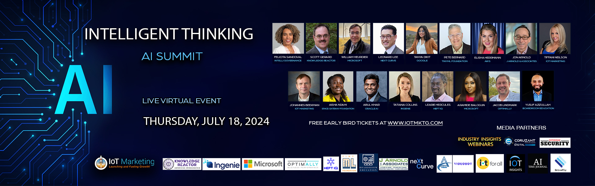 Examine the many dimensions of AI and learn how to leverage machine learning and automation to your advantage. Join Industry Insights Webinars and IoT Marketing on Thursday July 18, 2024, for “Intelligent Thinking AI Summit” a live virtual event, where you can network, as industry experts and solution providers share their thoughts on the state of artificial intelligence and the power of its potential.